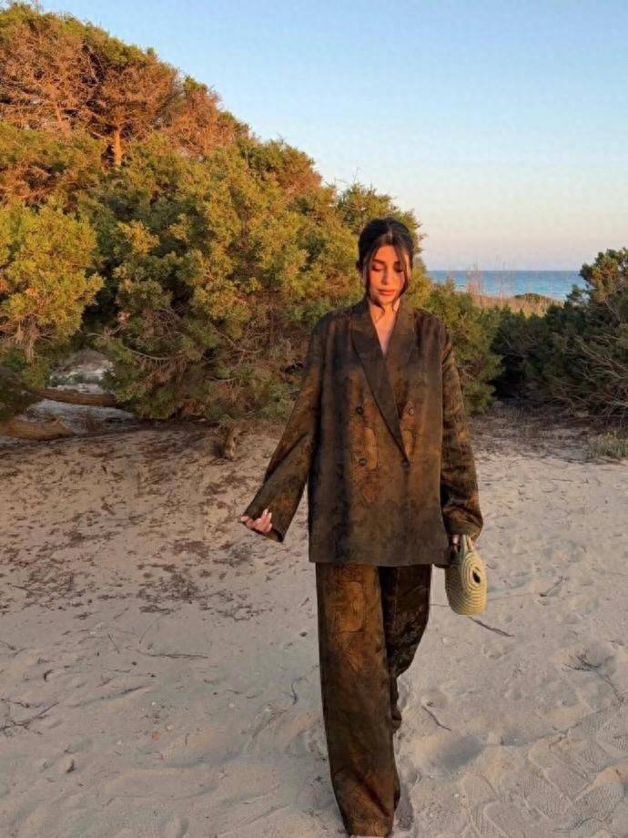 aydahadi 的穿搭核心是 “极简主义”,但这种极简绝非单调乏味。她的衣柜里多是基础款单品,比如剪裁利落的白衬衫、垂坠感极佳的阔腿裤、版型挺括的西装外套和柔软亲肤的针织衫,却能通过巧妙的组合让每一套 look 都有记忆点。她尤其擅长运用同色系搭配,浅卡其与米白、深灰与黑色的碰撞,既保证了整体的和谐统一,又能通过材质的差异 —— 比如羊毛与真丝、牛仔与皮革的混搭,营造出丰富的层次感,让简单的穿搭瞬间摆脱平庸。