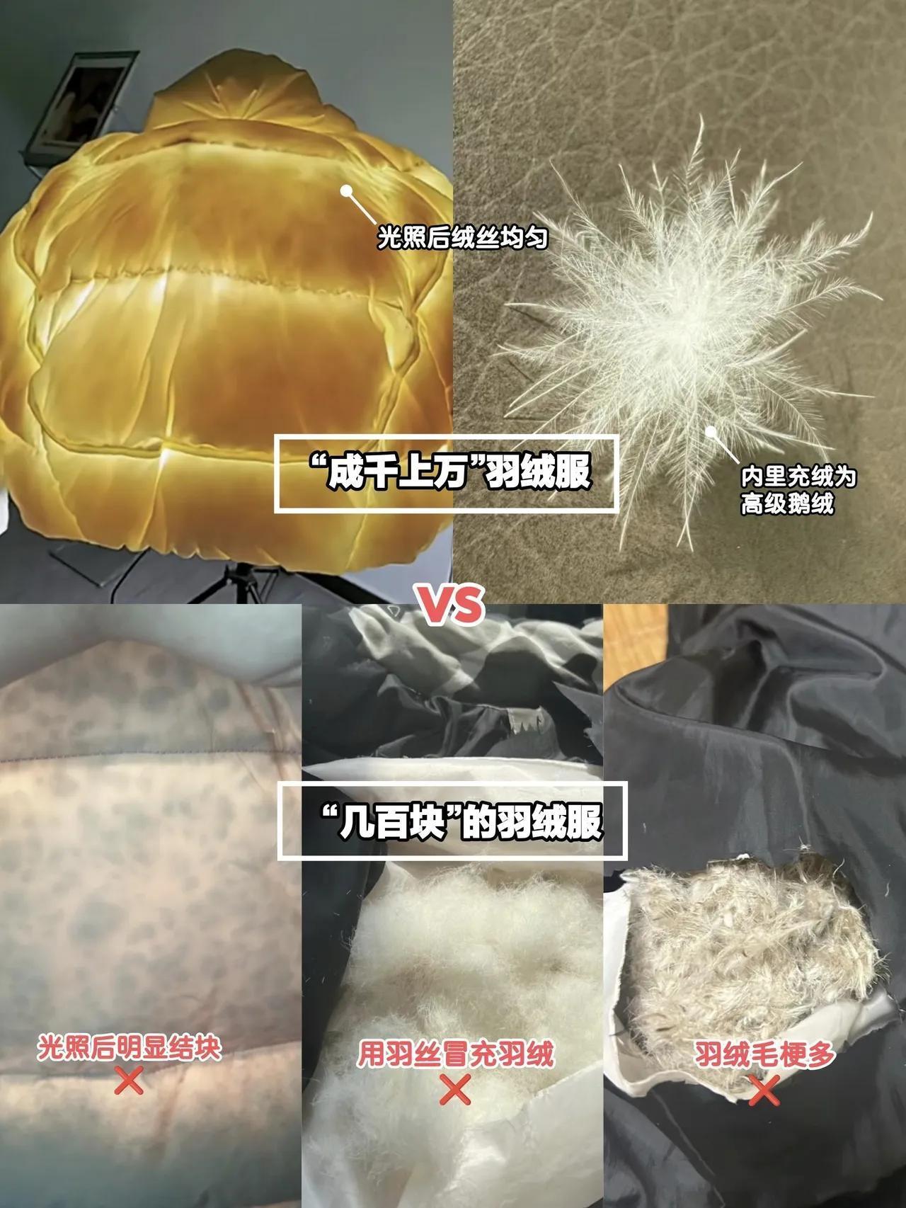 如果买到的羽绒服里面羽绒毛根多,用羽丝冒充羽绒,这种衣服穿在身上肯定不保暖,而且还很容易结块,你说怎么可能穿出高级的造型呢?连保暖都做不到。