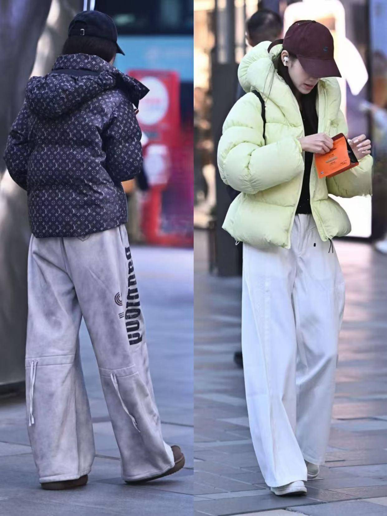 裤子面料不同也会影响整体的穿衣风格走向,比如你选的是上面这样的休闲直筒裤来搭配上羽绒服外套,那么就能让你的穿搭造型更日常,不管是穿去上班,逛街,约会,旅游,都没有任何问题,通勤又时髦。